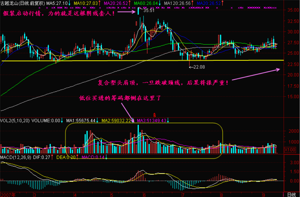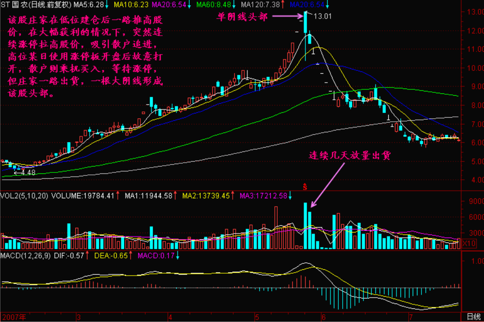 阴线顶部的价格就是股价的头部,在以后较长的时间内,股价很难冲过这个头部;