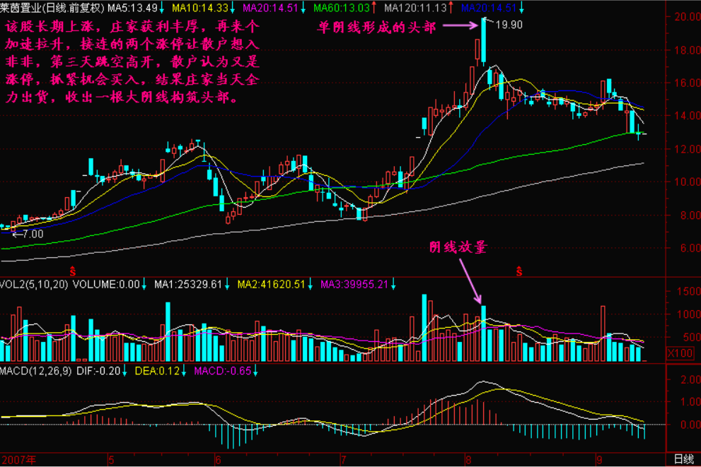 阴线表明在一天的成交过程中,空方力量较强,将股价从高位一路打压到低位,多方明显处于弱势。如此说来,阴线很容易形成头部?