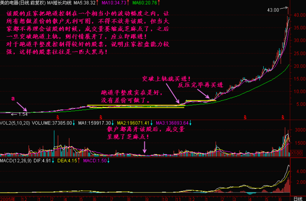 对于跑道平整度控制在一个相当小的波幅内的股票,说明庄家控盘性好,这样的股票一般都是大黑马!