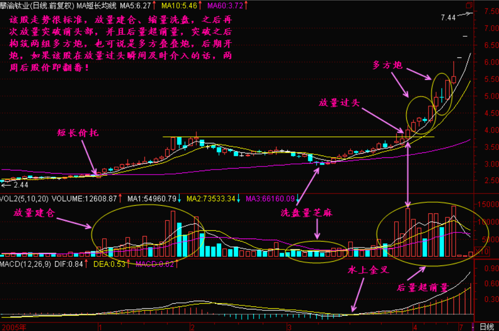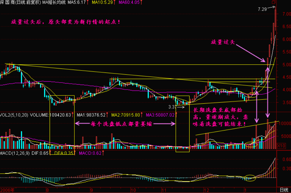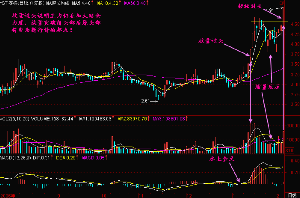 放量突破前头部说明主力仍在增加建仓力度,一旦突破并站稳后前头部压力线将变为以后回档的支撑线。