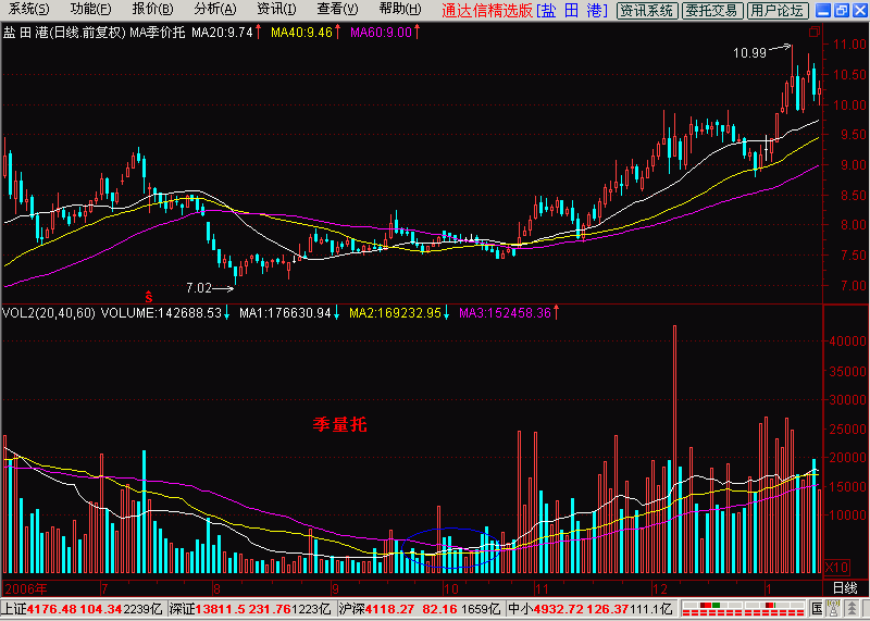 按周期分类:可分为“月量托”(5日、10日和20日)和“季量托”(20日、40日和60日),其中月量托灵敏,而季量托稳定。