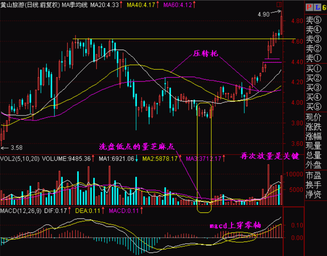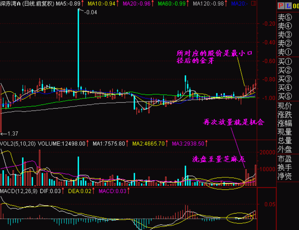 (3)需要强调的是:回档幅度越潜越好,量芝麻点越小越好。