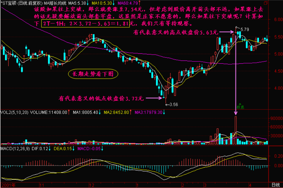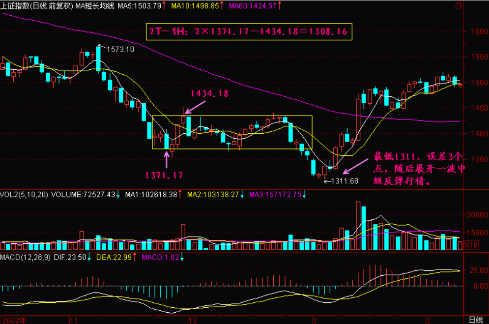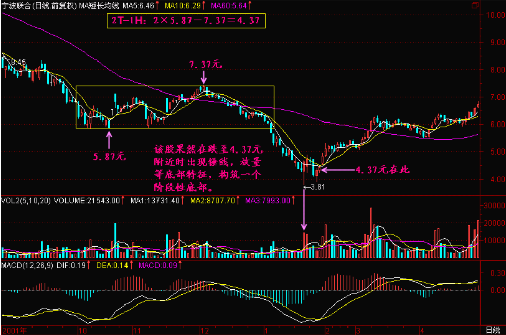 有一点是需要提醒大家注意的,那就是运用【2T-1H】公式来计算抄底价格时,必须建立在对该股的整个历史走势精心分析的基础上的,还包括该股的基本面、指数当时的情况等。