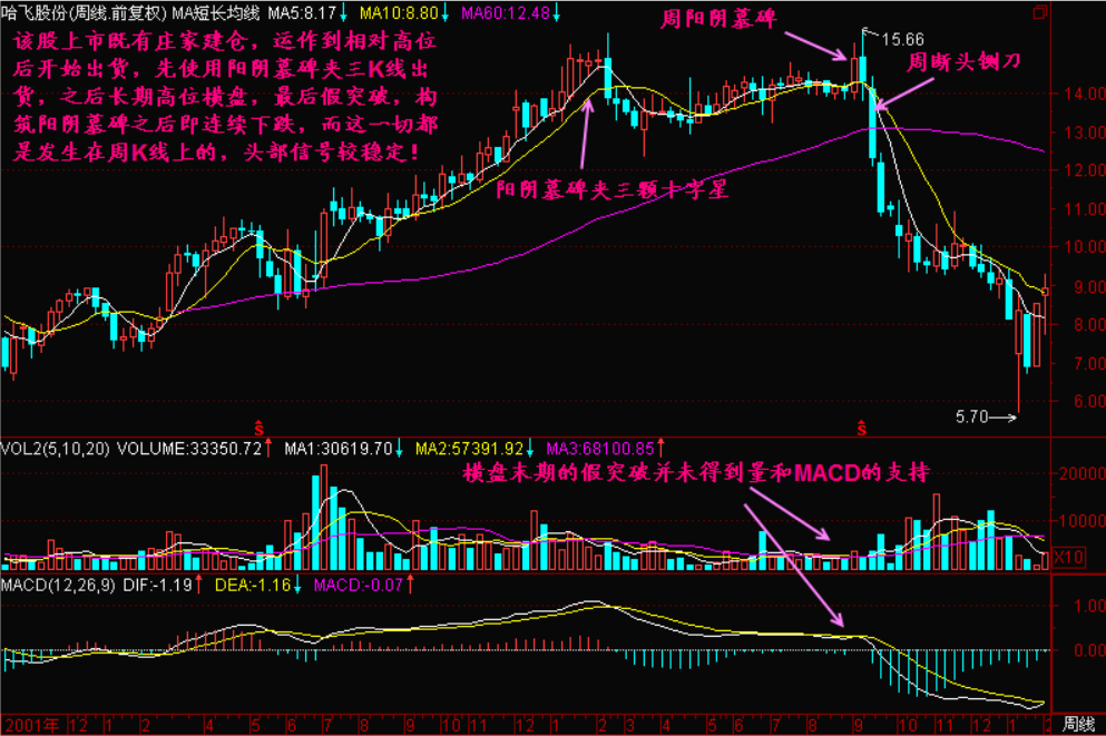 周K线上的阳阴墓碑构成头部后更加稳定!