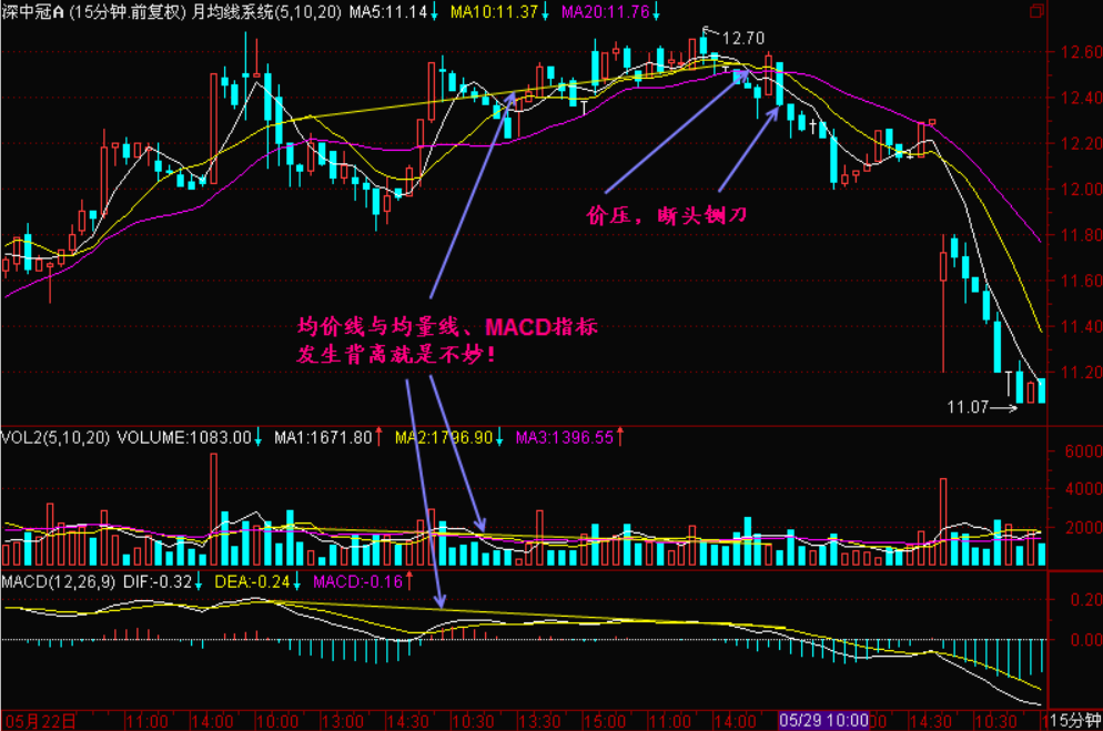 上面三幅图加起来研判已经很不妙了,再看看下面的5分钟K线图吧!