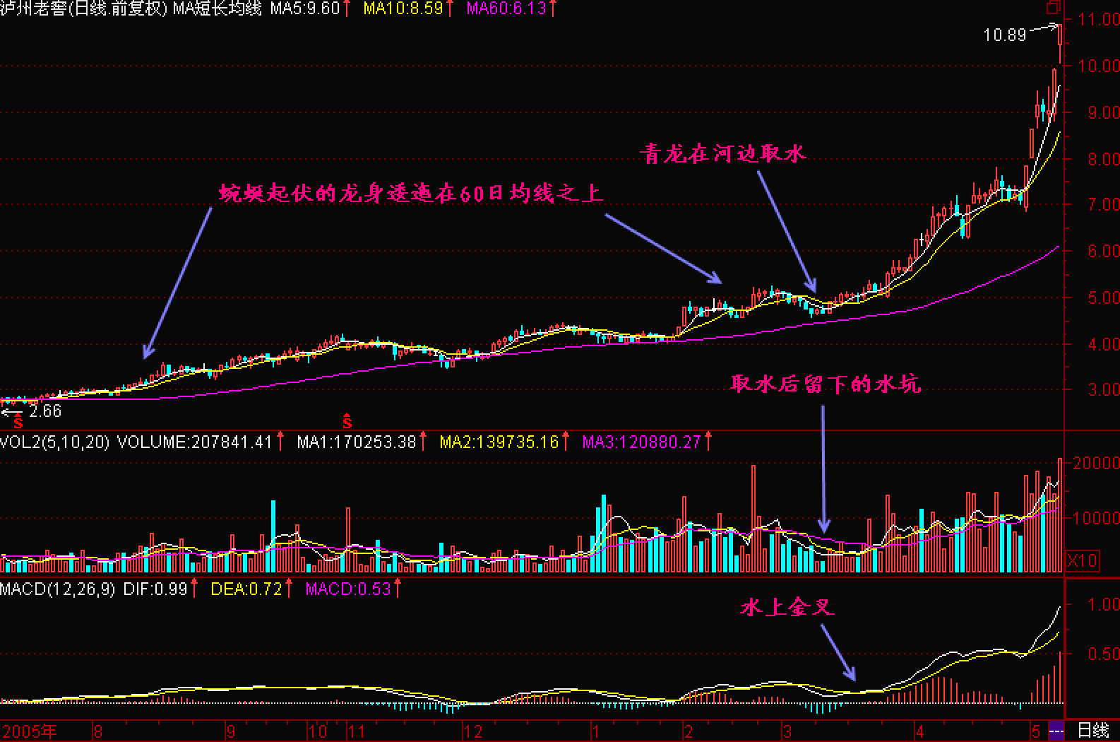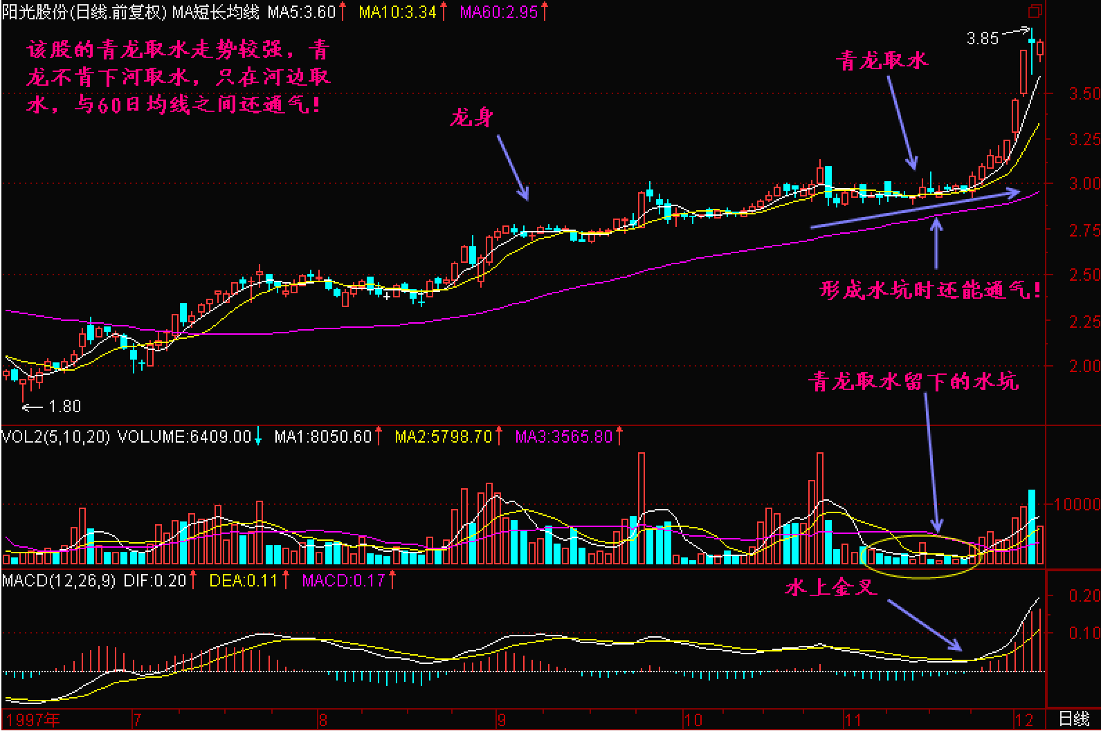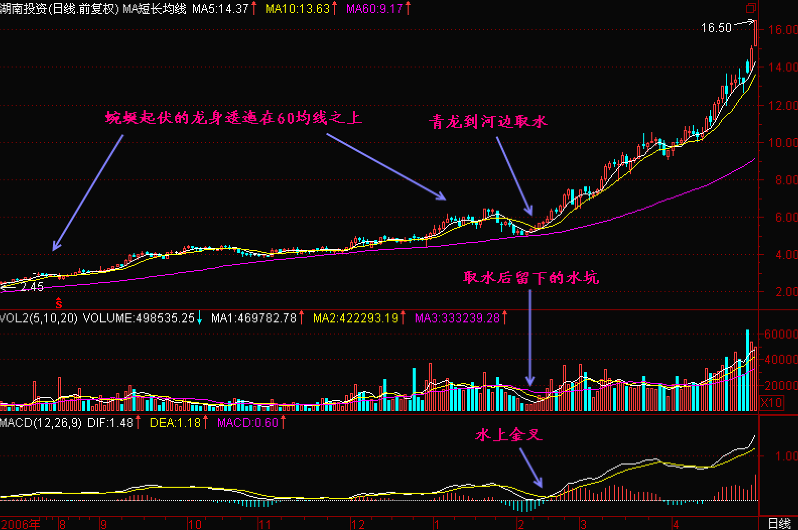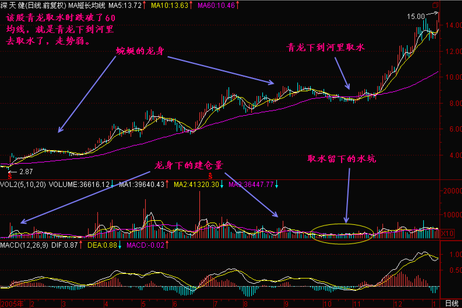 一旦青龙取水后股价容易获得上升动力!从而改变原有沿60日均线盘升的格局,加速上扬!