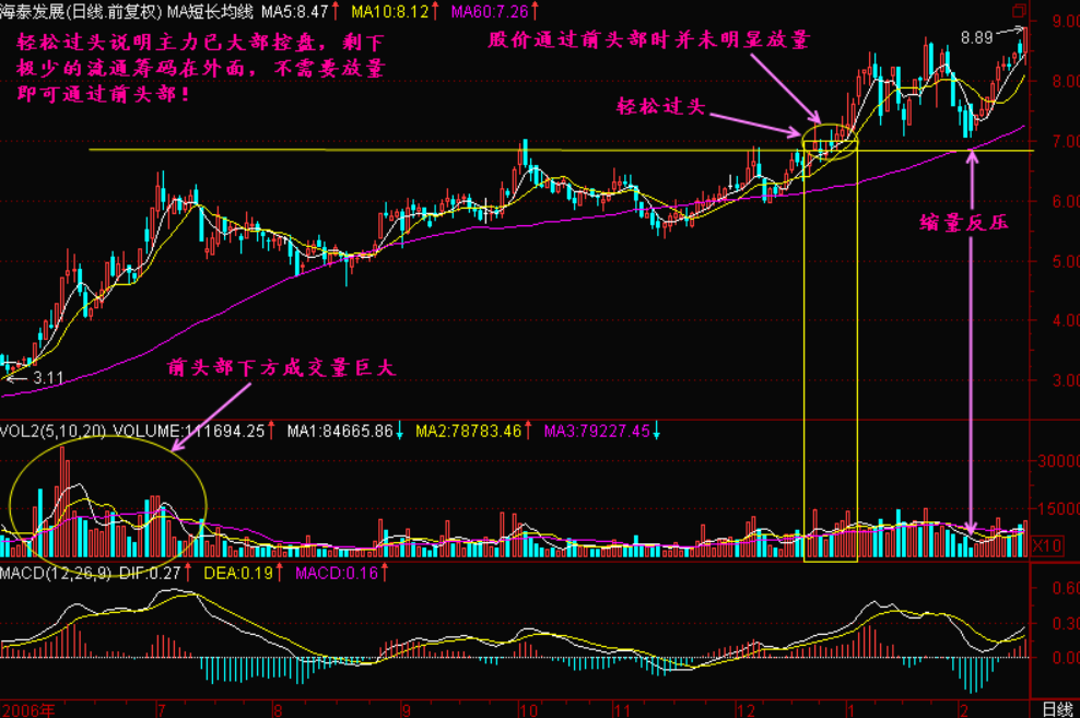 这样为庄家未来创新高减轻了市场压力,所以不需要放量即可轻松过头。