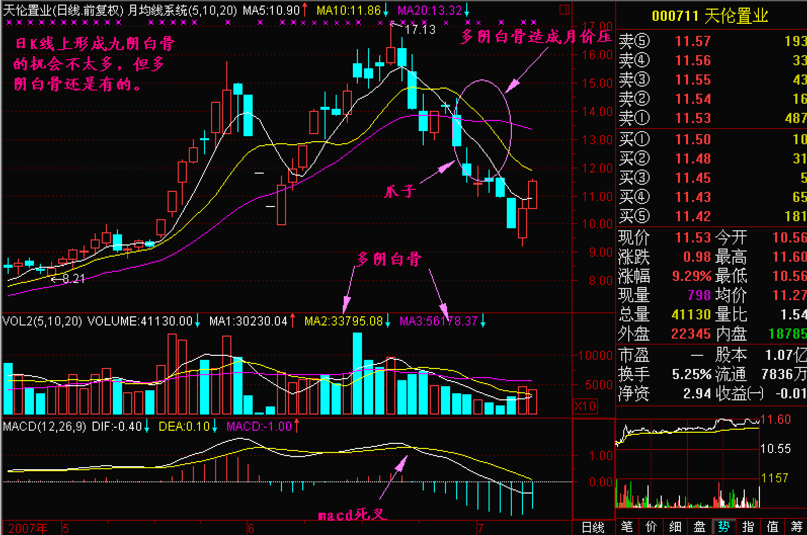 看到九阴白骨爪要立即意识到该股庄家已经在大量出货了,该股在一段时间内都不可能再有好的机会,对于这样的图形只能是撤退撤退再撤退!别无它法!