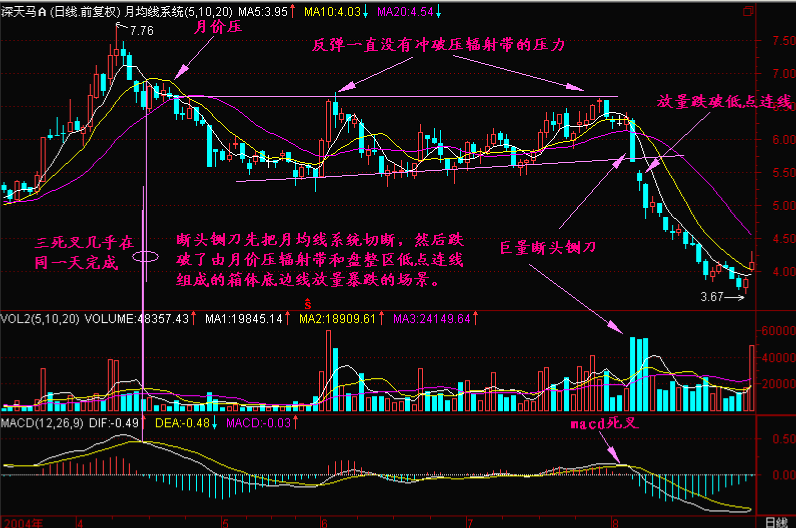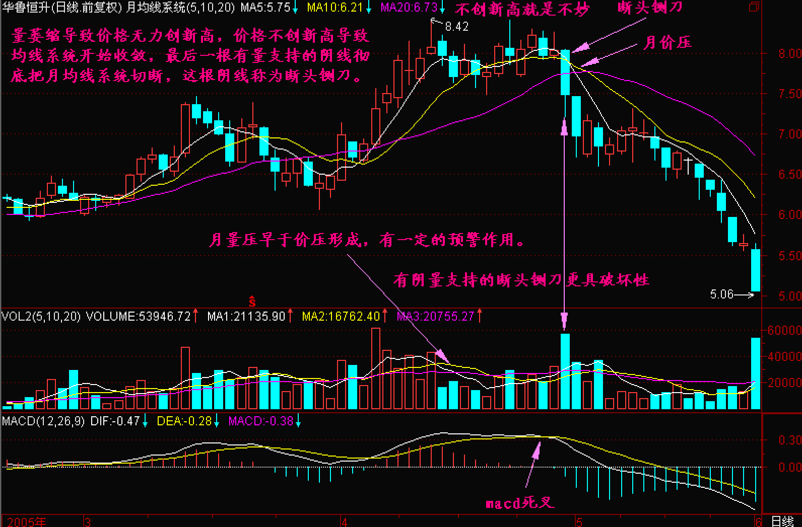 “断头铡刀”的市场意义为:(以月均线系统为例)